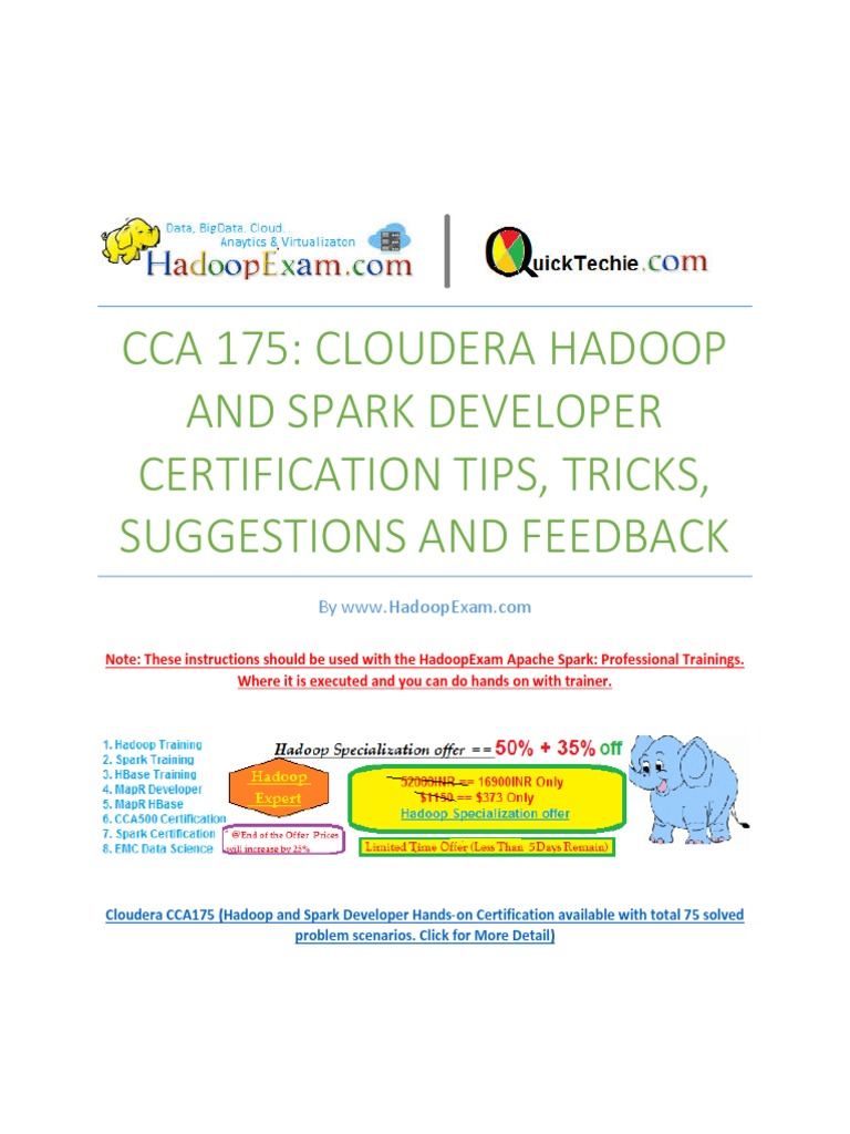Spark fits into the hadoop open source community building on top of the hadoop distributed file system hdfs. Total 64 solved scenarios cloudera certification cca175 hadoop spark developer is one of the most popular and demanding certification in the bigdata world and since inception hadoopexam is providing certification preparation material for bigdata world and as part of our. Practice exam for cloudera hadoop and pyspark developer cca175 questions and answer for real exam and dumps used in usa uae india japan russia italy hongkong uk etc. The cca175 apache spark and hadoop developer certification requires scoring a 70 or higher on your cca175 exam.
